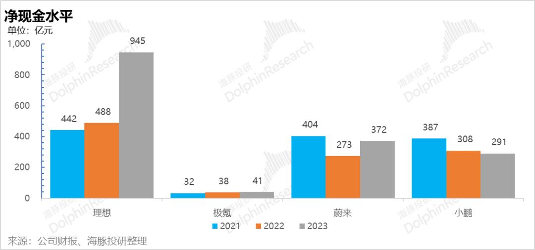而极氪并无自身工厂,除了销售开店有一定的门店资本投入之外,其他资本投入寥寥,因此从单纯业务经营所需现金角度额,极氪2021年和2023年最终经营层面资金最终基本都是打平状态,账面来看并不需要阵营补充运营资金。