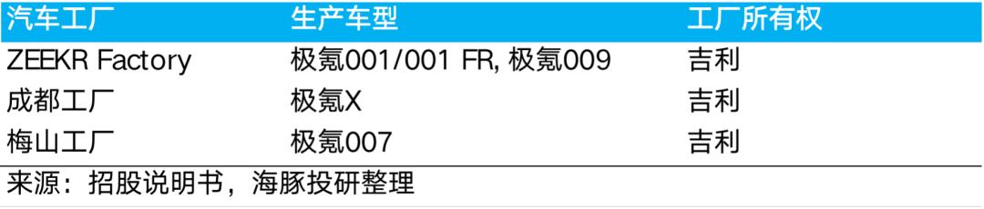相比于目前多数新能车都开始自建产能,而极氪还是用的吉利“代工”的生产 模式: