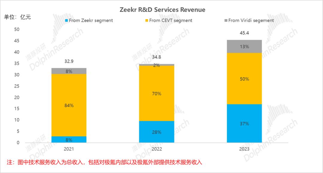 这样,CEVT真正的收入其实是25亿,研发收入的另外6亿,是威睿部门研发服务收入。等于是说,最终极氪剔部门去重之后的研发收入实际是31亿。