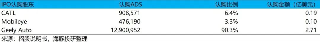 三是上市时融资不到4.5亿美金,亲爹吉利汽车一口气认购了2.7亿美金,贡献几乎70%的融资额。
