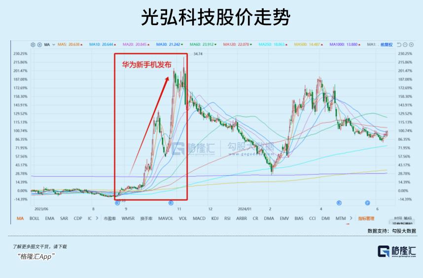 不过,需要指出的是,在去年华为手机回归疯涨之后,又有过一轮非常大的跌幅,说明短线的资金炒作非常大,这是目前A股调性决定的,所以这一次如果大涨,短线获利资金依然有机会重复这种走势。