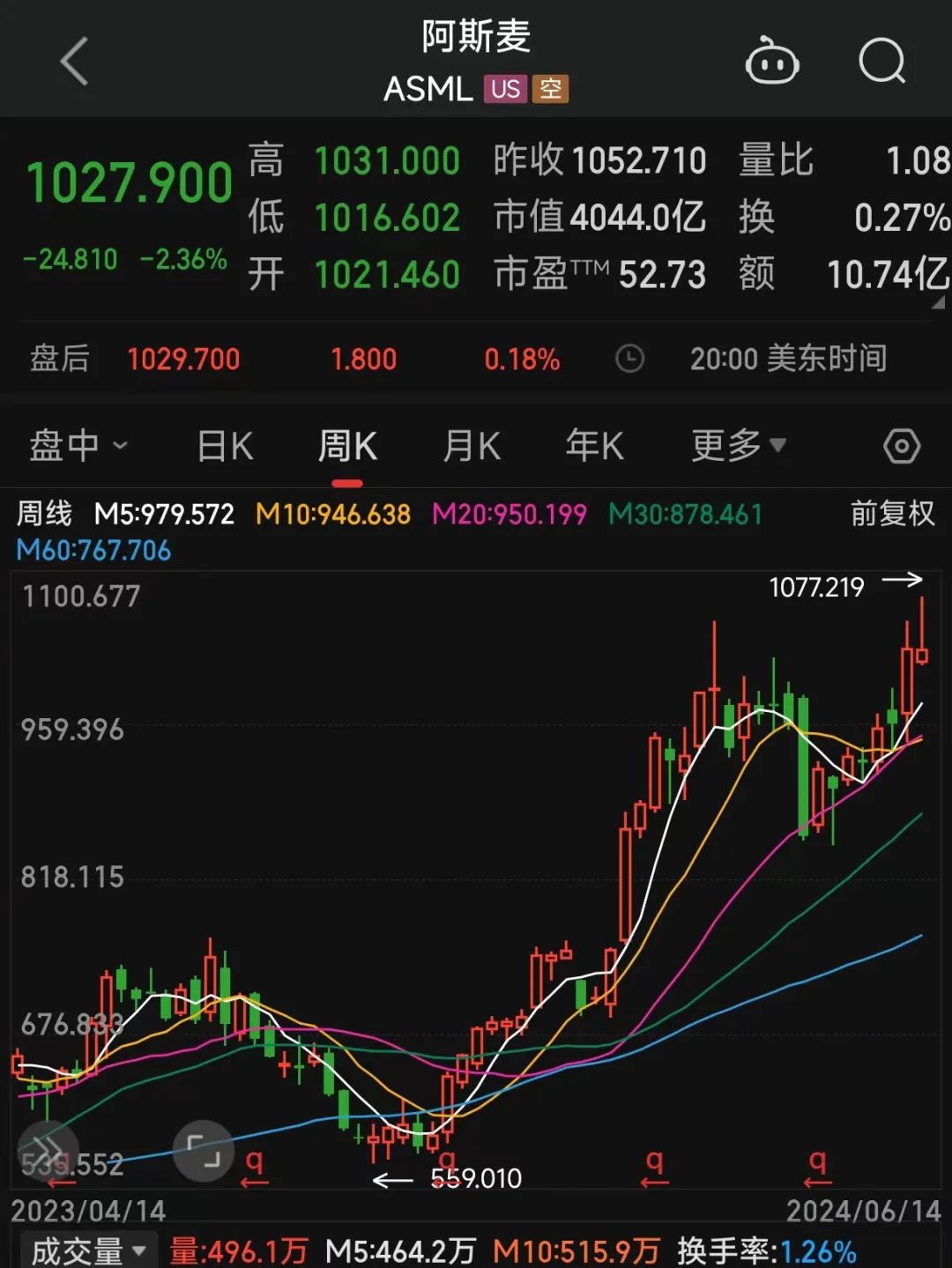 财报披露后,美股市场中,阿斯麦的股价在夜盘交易中一度大跌超11%。