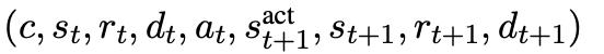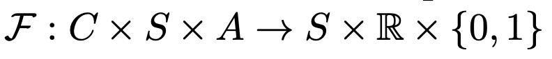 他们将文本的虚拟环境形式化,建模为一种马尔可夫决策过程(POMDP),共有7个元组:S, A, T , O, R, C, D。