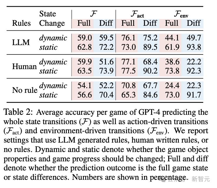 规则方面,研究人员也提出了三种设定:由游戏作者撰写、由LLM自动生成,或者根本不提供规则。