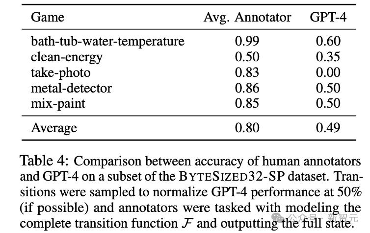 结果发现,GPT-4普遍无法捕捉与智能体行为无直接关联的「状态转移」(state transition)。