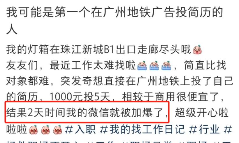 有网友现身说法,花了 1000 块在珠江新城 B1 出口,投了 5 天个人广告。才 2 天时间,他的微信就被“加爆”了。