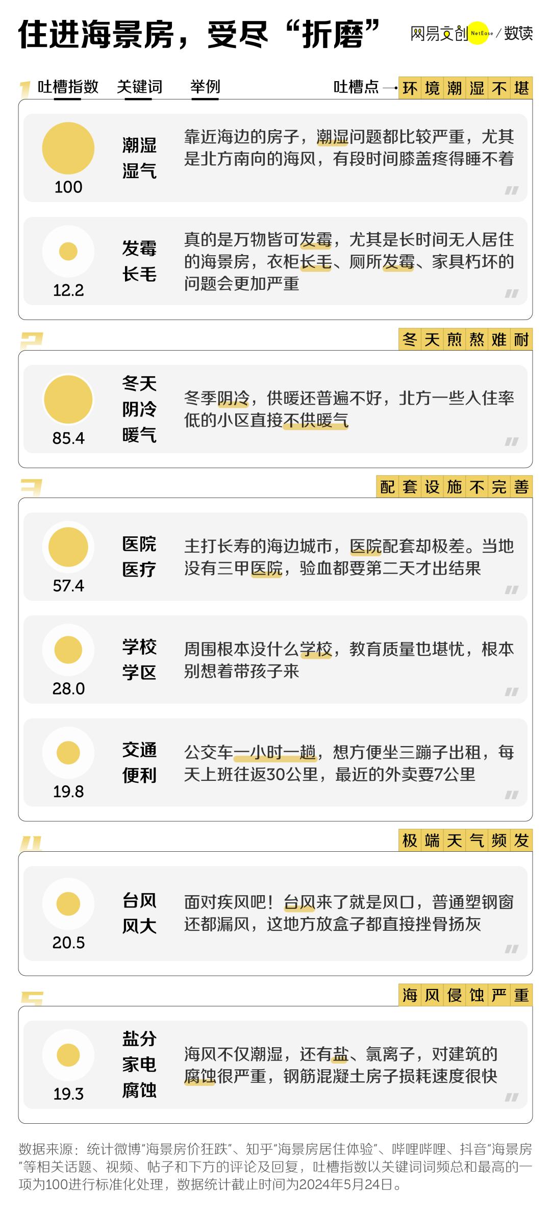在社交媒体的讨论中,海景房最为人诟病的是潮湿,斑驳的墙面、生锈的家具、短路的家电都是面朝大海的代价。
