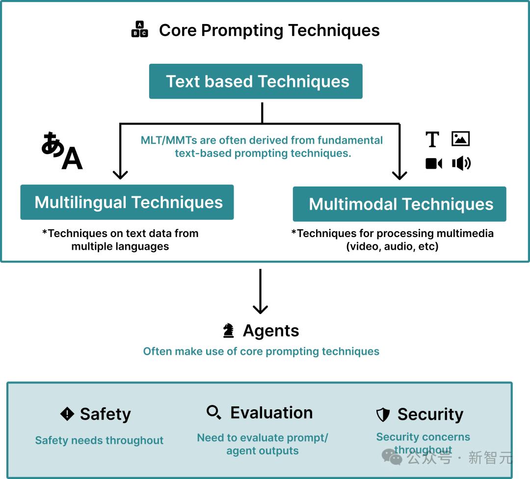 论文中,研究人员提出了全面的分类提示技术——基于文本、多语言、多模态三大类。