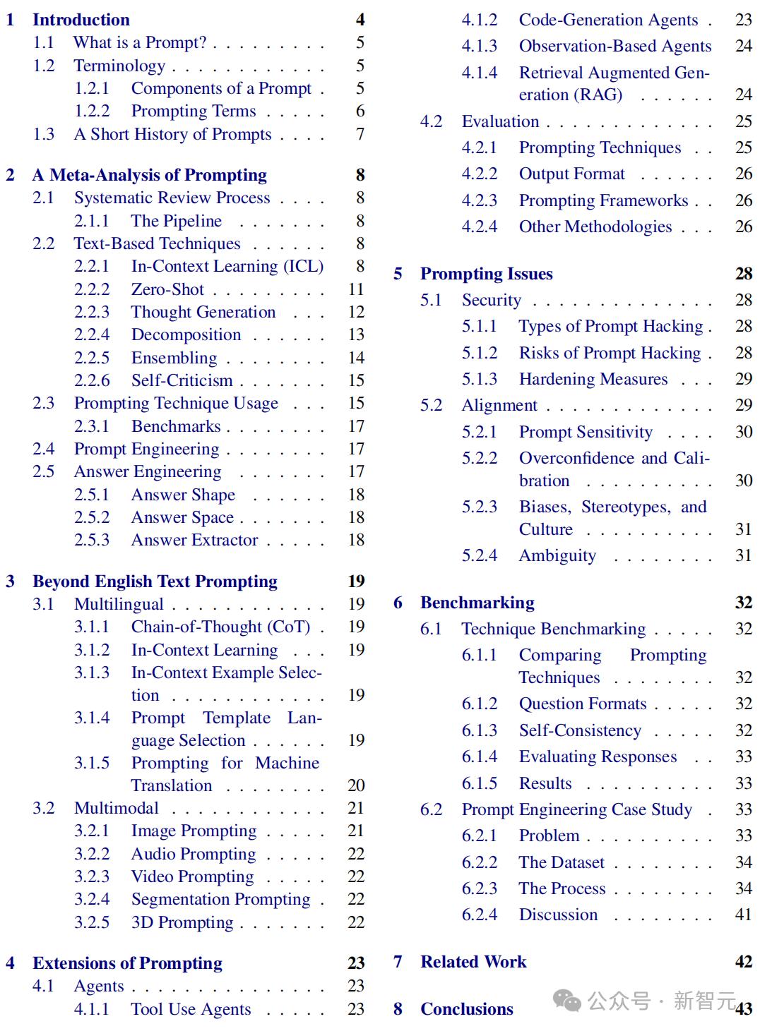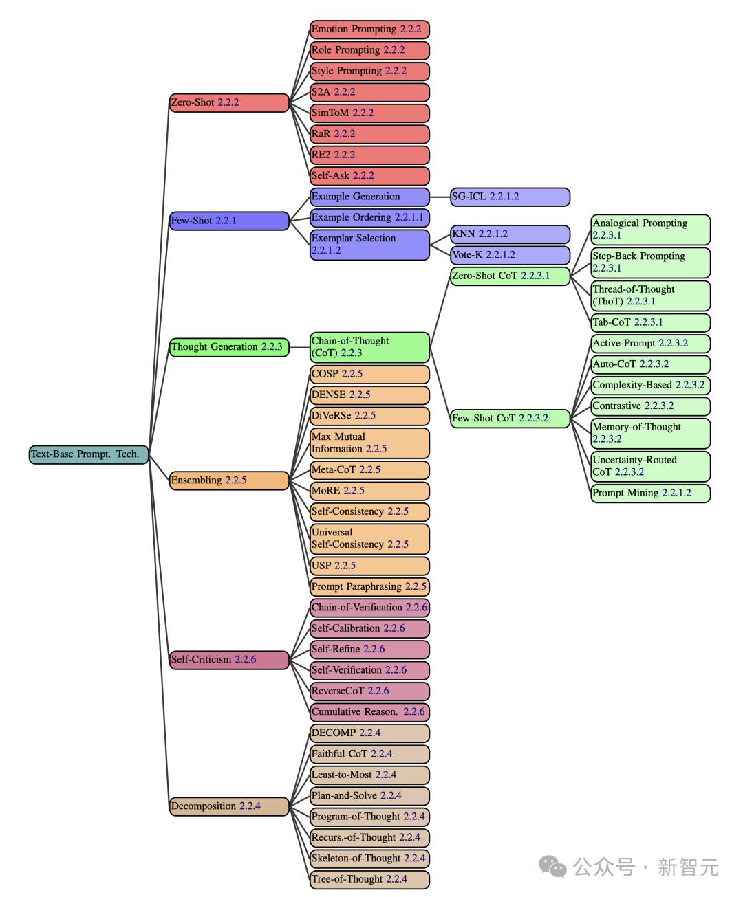 由此,他们得到一种分类法,建立了包含33个术语的综合词汇表,一个包含58种文本提示技术的分类体系,以及40种其他模态的提示技术等。