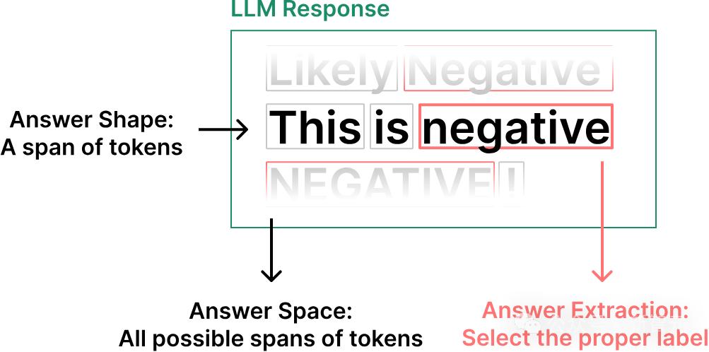 由于这是一个分类任务的输出,答案形状可以限制为单个token,答案空间可以限制为两个token之一(「positive」或「negative」),尽管在这个图像中它们没有被限制。