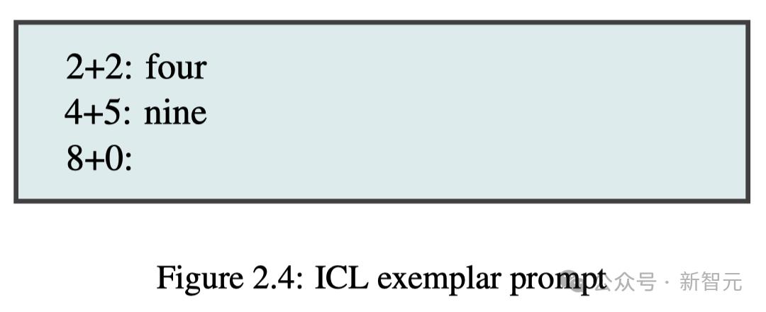 比如,你给出2+2=4,4+5=9,然后8+0这样的提示之后,LLM便会从前两个算式中学习推算,进而解决任务。