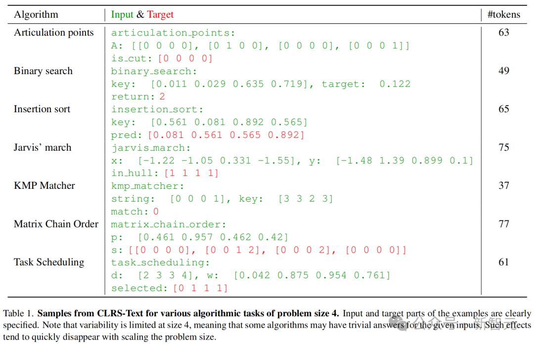 训练数据使用CLRS-Text基准,即CLRS-30基准的文本版本,以确定性的方式直接从基于图的CLRS-30中派生,因此这两个数据集传达的是完全相同的信息。