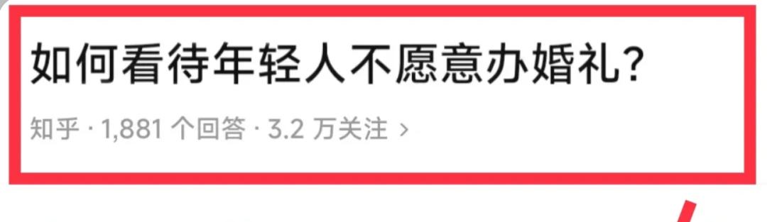 根据“后浪研究所”发布的《2023年轻人理想婚礼报告》显示,在10分制下,当代年轻人举办婚礼的平均意愿值仅为4.81分,其中超过一半的受访者认为“费钱”、“传统婚礼陋习太多”。