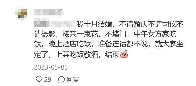 “我和我太太就是普通的打工人,哪怕不吃不喝一年也就存个小几万,花2-3年的积蓄邀请别人来看我们婚礼,很没必要。”