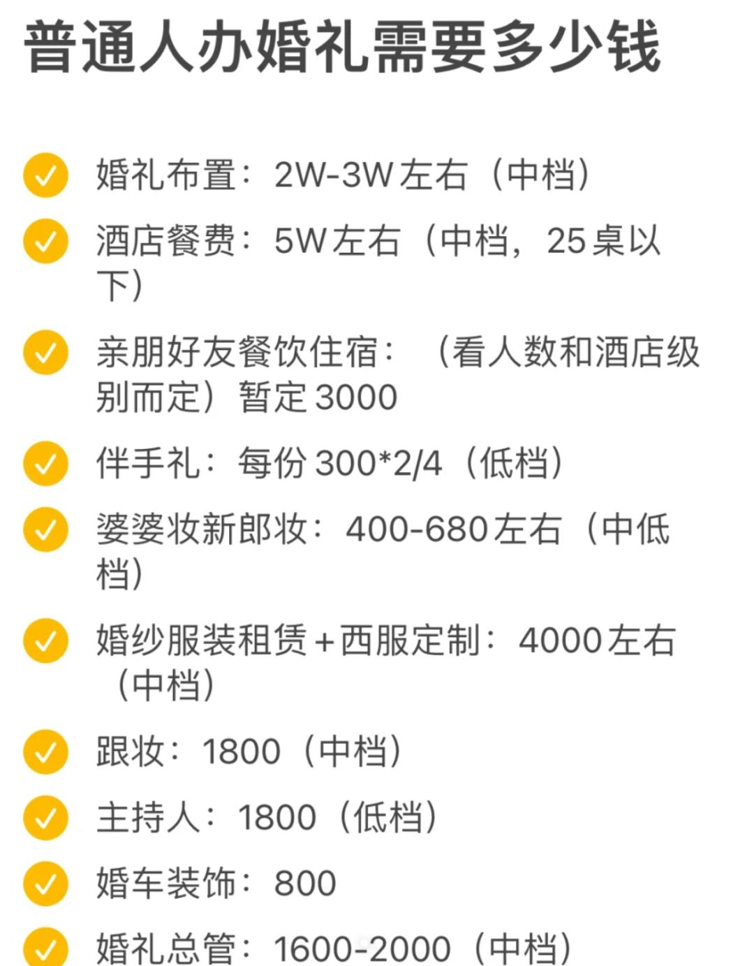 他算了一笔账,如果按他老家的标准,一场婚礼的各种费用算下来,大概需要20万至30万左右。