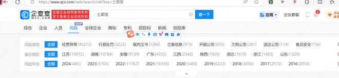 根据企查查显示,现存续的土菜馆企业有104940家,其中有52771家存在风险,在风险类别中其中经营异常的有45211,被行政处罚的有3223家。造成这样原因有很多种,最重要的原因是该市场的竞争已经异常激烈。造成这种现象的理由我认为有二种: