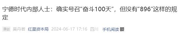 6月17日,#传宁德时代施行896工作制#,登上热搜。