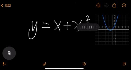 当然苹果确实有高傲的资本,尽管花的时间长了些,但它确实做到了,iPadOS 18 自带的计算器,除了支持常规计算,它还支持手写计算,可以根据手写变量实时更新计算结果,甚至还能直接画出函数曲线。