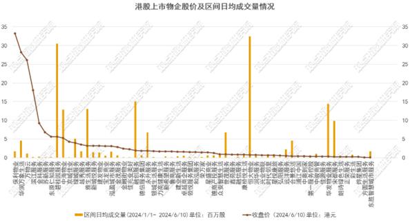观点指数观察到,绝大多数物企与华发物业一样,面临股价长期“仙股”、交易量低迷及近乎失去融资功能的情况,仅少数物企在资本市场上具有优势。统计显示,截至6月10日收盘,港股60家上市企业中处于仙股的有26家,另外收盘价2港元以下的共有40家;并且年初至6月10日的日均成交量不足百万股的有39家。