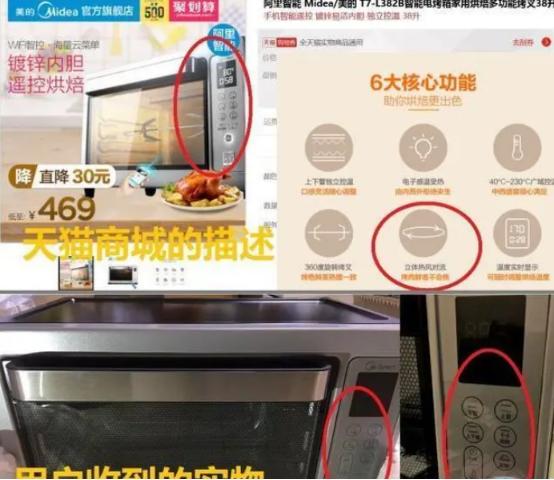 据报道,2016年双11期间西安王女士在美的官方旗舰店购买了一台型号为“美的T7-L382B”的电烤箱,商品页标注支持“立体热风对流”功能,但收到货物之后发现产品没有该功能的按键。王女士将天猫“美的官方旗舰店”的实际运营单位——美的集团电子商务公司起诉到法院,同时也将天猫电商平台列为第二被告追诉平台的监管责任。最终判决书显示,王女士获得了三倍于商品的赔偿。