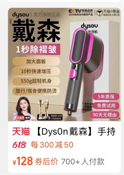 相比虚标小家电,更严重的问题则是山寨品牌。不少消费者在某些主播的直播间看到过海“尓”电器”或是Dys“0”n吸尘器,这些山寨家电品牌的套路令人哭笑不得。