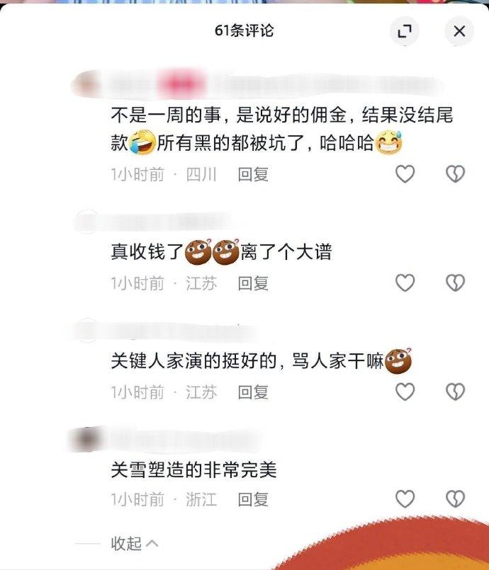 五月初,某个连续锐评《哈尔滨一九四四》的抖音博主,一改口风,评价剧集差强人意,并在评论区回复质疑、大谈“收黑钱”。