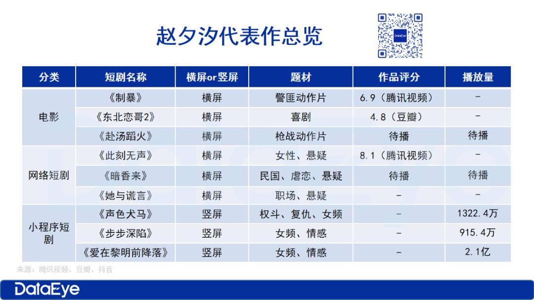 赵夕汐是舞蹈演员出身,短剧新秀,横屏和竖屏都有所涉猎。从演绎的题材和角色来看,她的可塑性强,高智商律师能演,恶毒女配能演,小白花也能演。