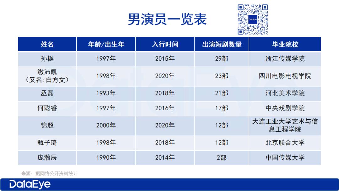 从年龄来看,DataEye所统计的这几位从传统影视行业进入短剧行业的男演员,均为90后,仅锦超一人为00年出生。