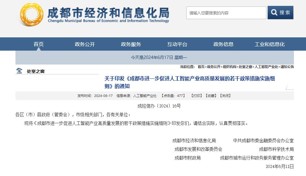《成都市进一步促进人工智能产业高质量发展的若干政策措施实施细则》