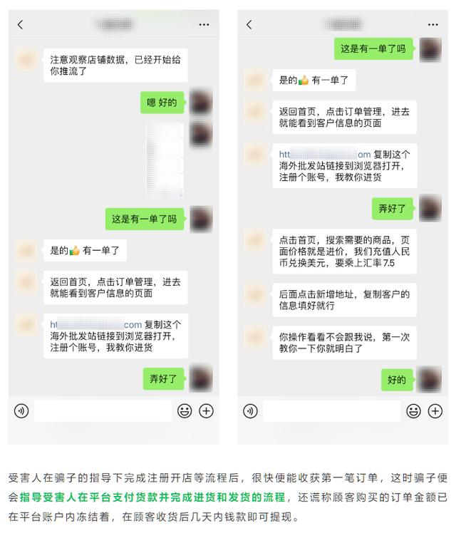 提醒各位想要一夜暴富的电商小白们,如果接到境外号码、陌生短视频推销,不要轻信此类「无货源跨境电商,一件发货」、「零基础也能开店」、「零成本保姆式靠跨境电商月入10万」的噱头,切勿向陌生人、陌生账号转账,一定要提高认知,擦亮双眼。