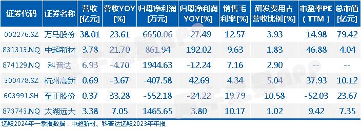 同行业上市公司方面,可比公司有万马股份(002276)、中超新材(831313)、科普达(874129)、杭州高新(300478)、至正股份(603991)。公司的毛利率水平在可比公司中处于较高水平,仅次于万马股份和至正股份;研发投入方面,公司研发费用占营收比例相对其它公司来说较低,仅为1.02%。