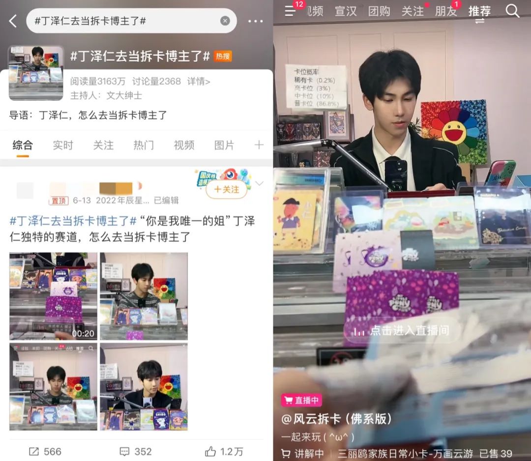 最具争议的是最近当上“拆卡主播”的丁泽仁,和其他一众爱豆们比,丁泽仁的起点其实并不低,即便没能在《偶像练习生》中出道,背靠乐华的丁泽仁最终还是以乐华七子THE NEXT成员身份出道,也有机会在各大影视剧中露脸。如今开设拆卡账号@风云拆卡(佛系版)在直播间里拆卡,多少让粉丝们有些不解。