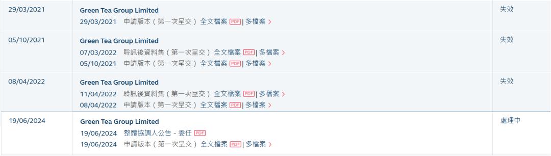 从2021年起,绿茶集团便踏上了向港交所递交招股书、寻求主板挂牌上市的征程。分别在2021年3月、2021年10月、2022年4月向港交所递交招股书申请,但三次均未通过聆讯。