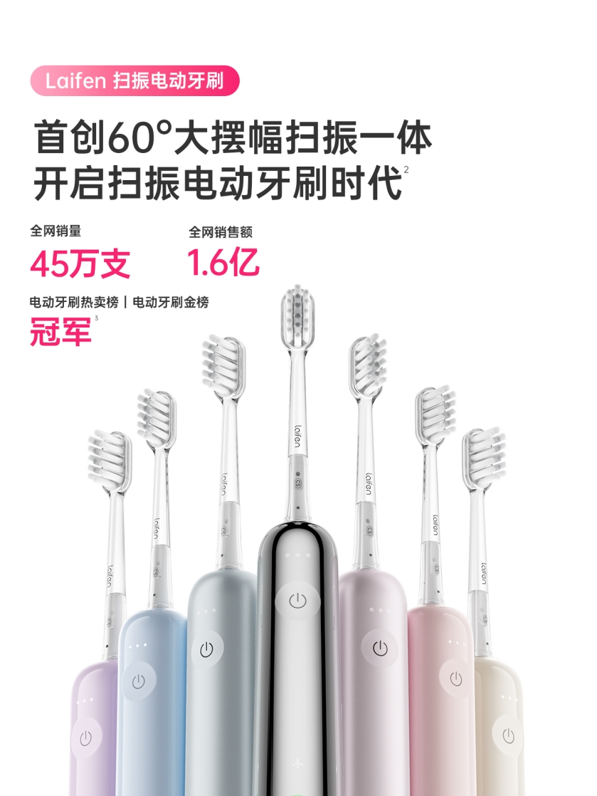 Laifen扫振电动牙刷上市便引起行业关注,证明持续的创新除了带来品牌自身的高速增长,同样也能够带动行业的发展和增长。优质的创新、卓越的产品,能够为市场带来全新的需求,同时也能刺激存量市场的更新。徕芬在电动牙刷的成功案例,无疑为整个小家电与个护行业打下一阵强心剂。