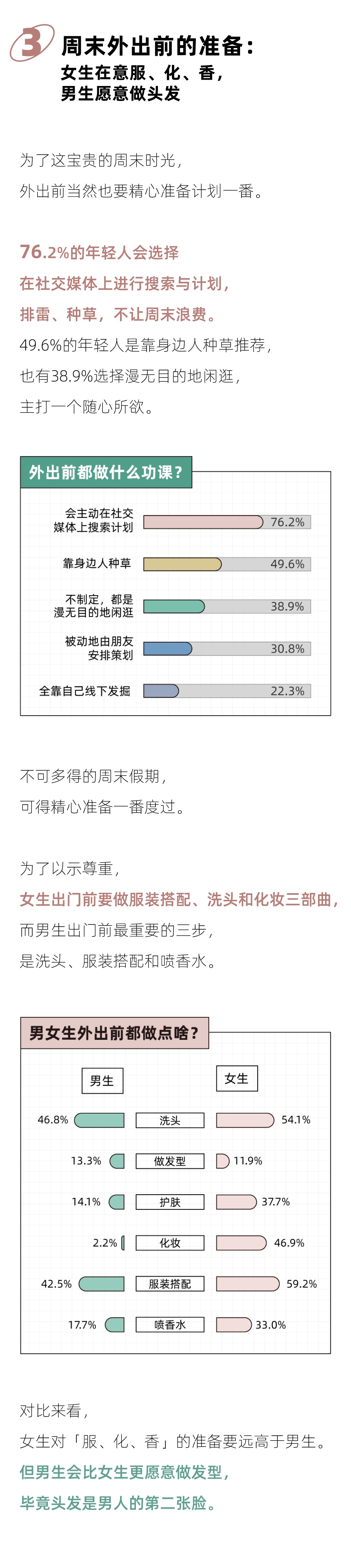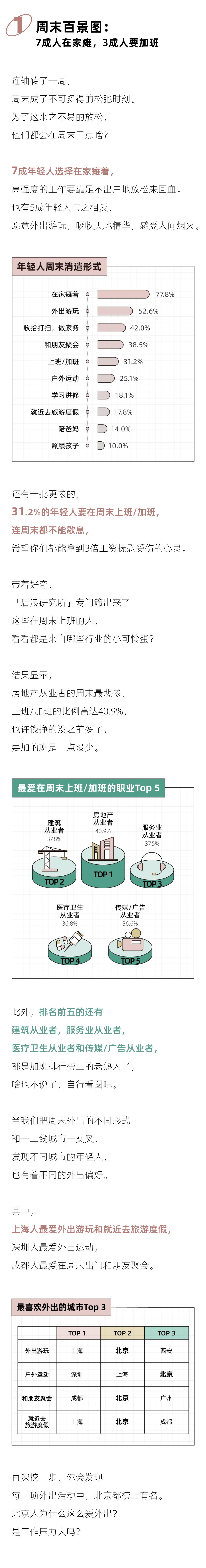 而五花八门的周末消遣,背后是年轻人对于生活品质的追求,以及自我空间的重视。越来越多的年轻人不再愿意为了KPI和业绩丢掉周末,决定寻回自己的人生秩序,至少要「我的周末我做主」。