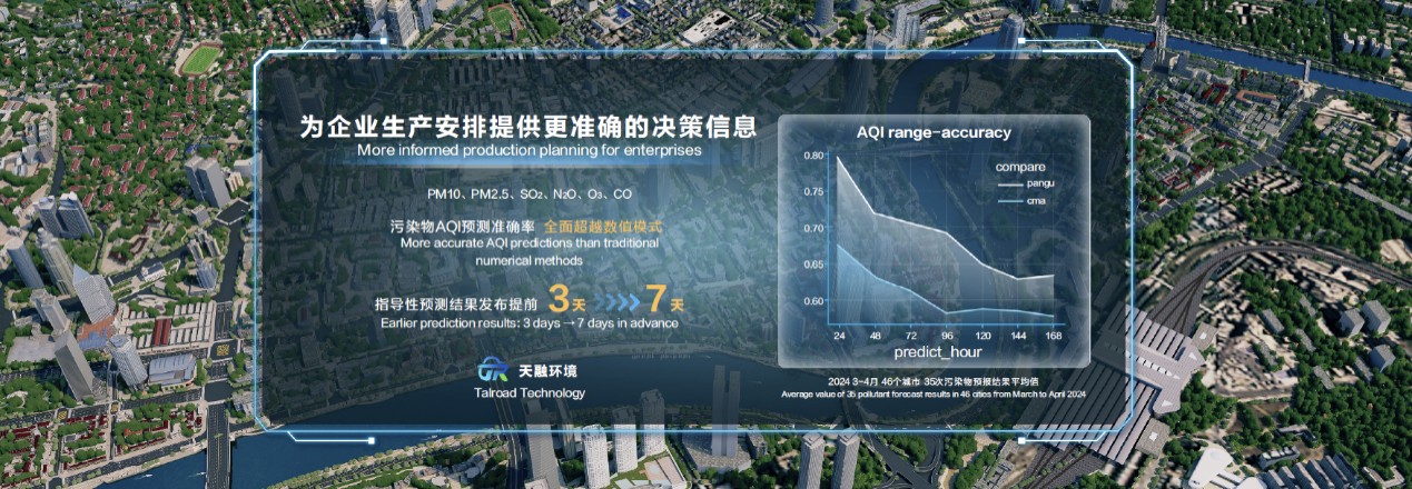 尤其是在环境治理方面,华为云与天融环境公司的合作推出了“环境大模型”,将污染六项的预测准确度全面提升10%以上,并且将预测窗口从3天提前至7天,为环保部门提供了更长的预警时间,有助于更加高效地进行污染源的定位与治理。