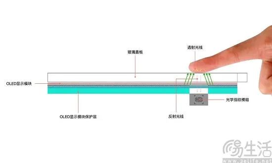 超薄光学屏下指纹方案技术示意图