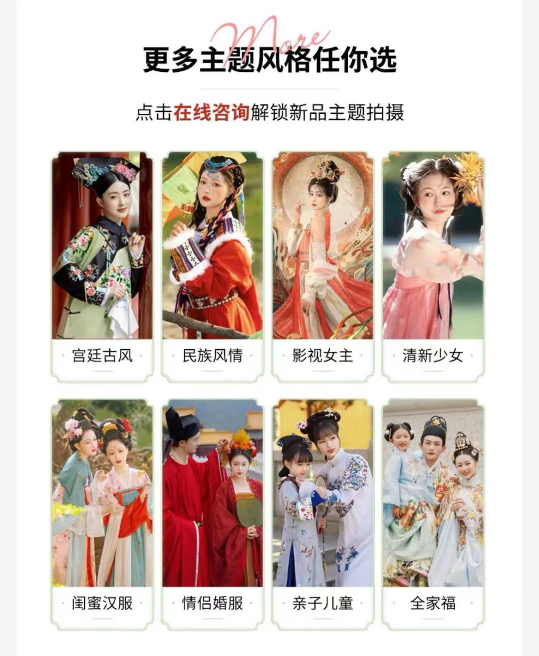 如果说国内的热门景区八成相似,那摄影工作室就要占半壁江山,其中最吃香的项目要数古风主题街景。