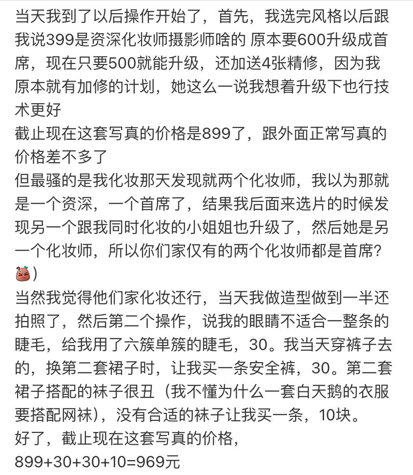 有的照片差价主要在填补精修和超精修上,但绝大多数还是在妆面上加价。
