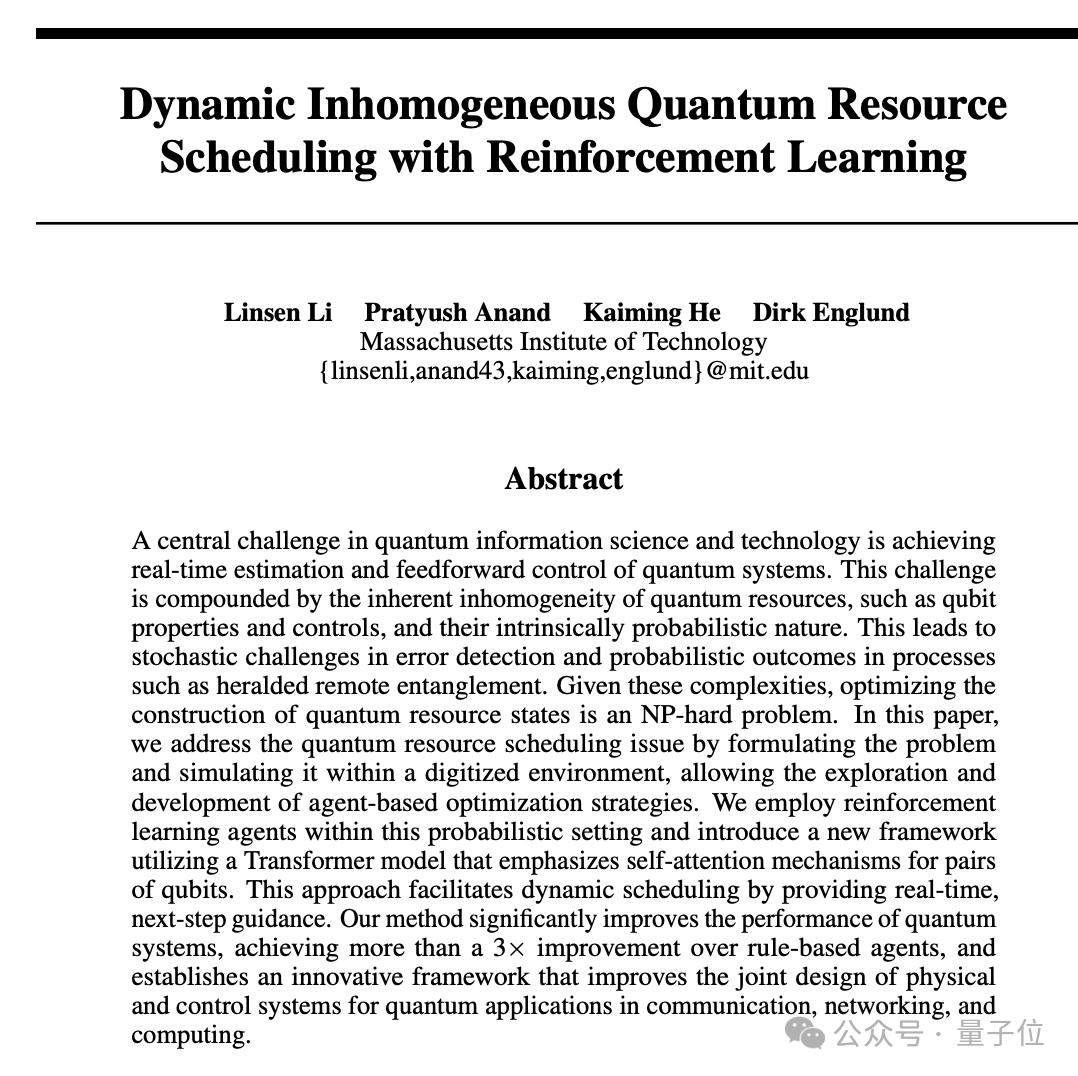 把Transformer模型用在了动态异构量子资源调度问题上,利用自注意力机制处理量子比特对的序列信息。并在概率性环境中训练强化学习代理,提供动态实时调度指导,最终显著提升了量子系统性能,比基于规则的方法提高了3倍以上。