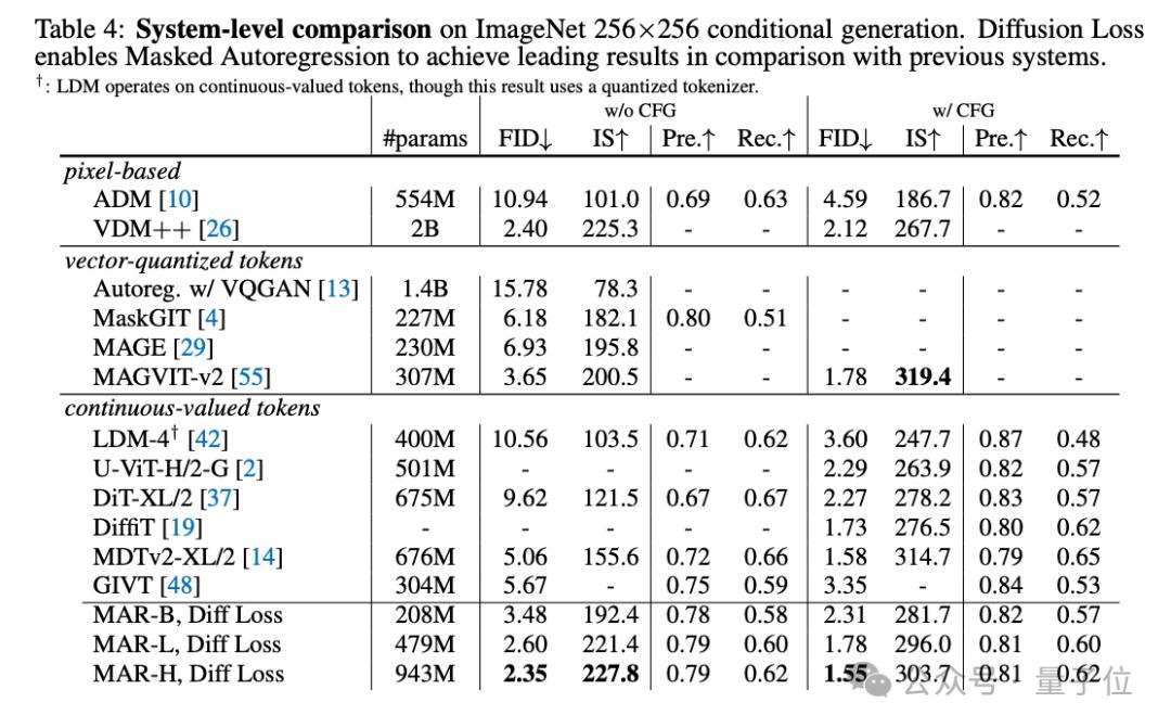 与其他领先模型一比也毫不逊色,小模型都能做到1.98的FID分数,大模型更是创下了1.55的SOTA。