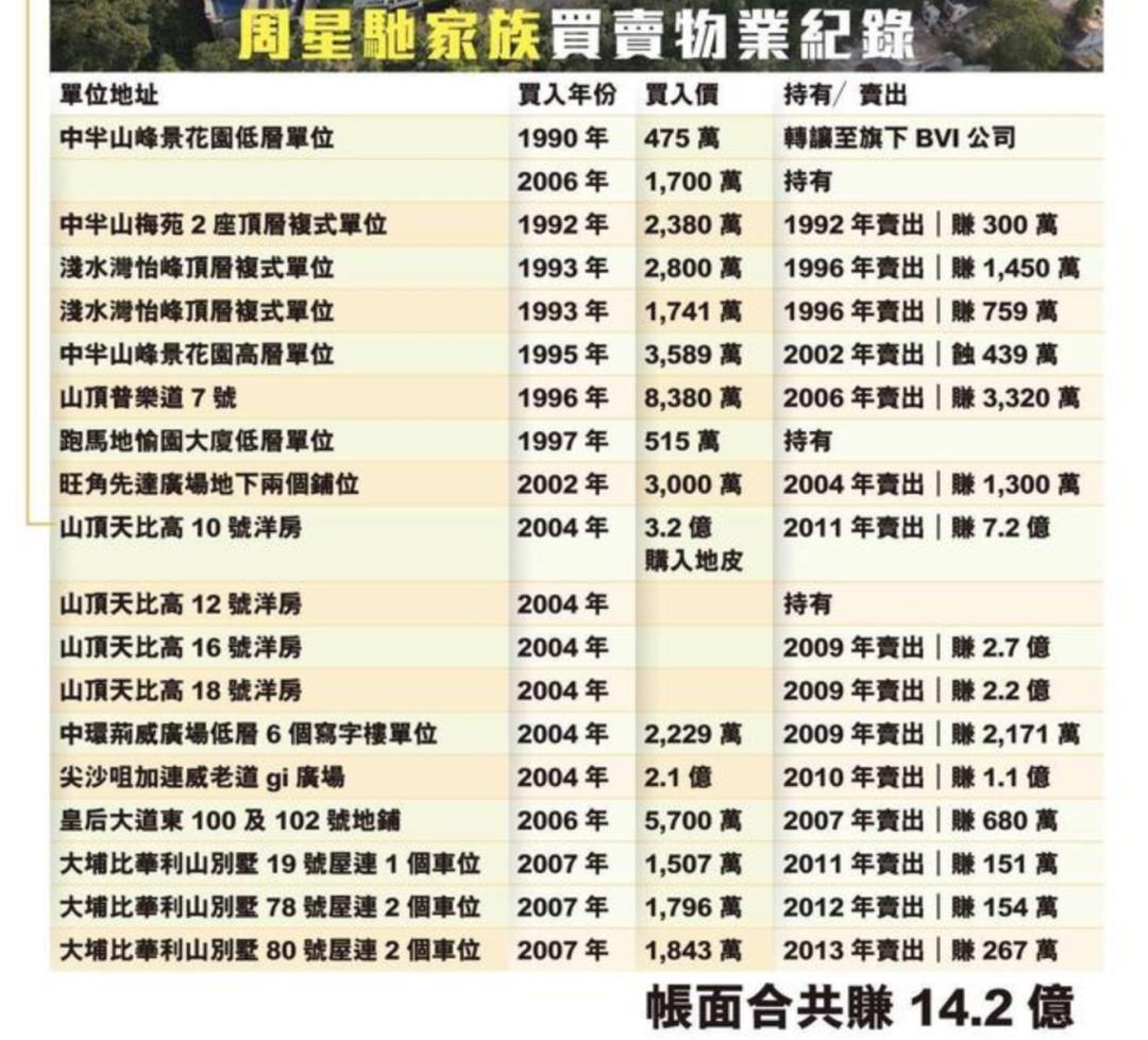 有港媒总结了他从上世纪90年代到本世纪10年代间的房产买卖记录,发现他的投资眼光极其独到,很少失误。