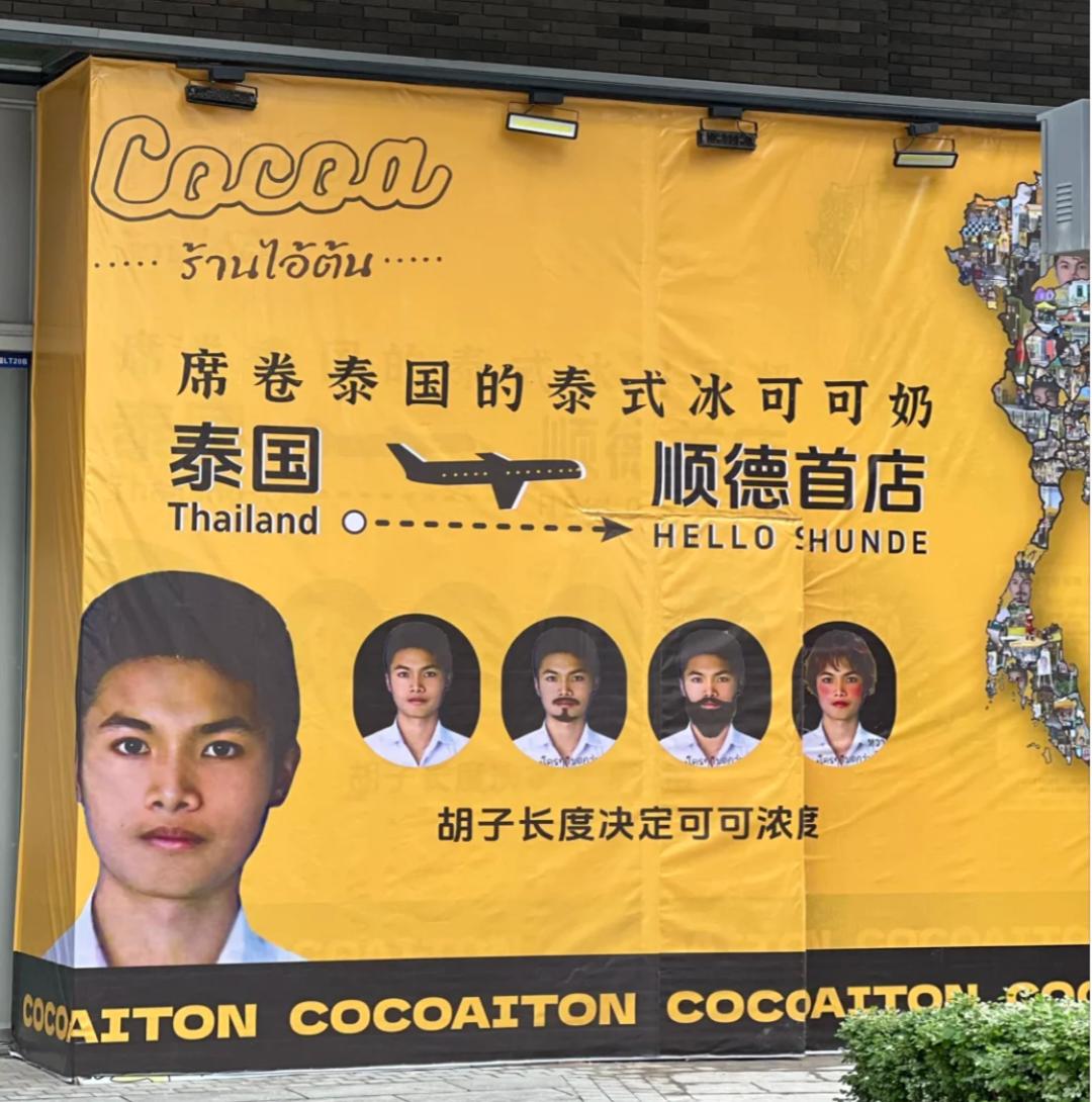 泰国网红茶饮品牌“大胡子冰可可”闯入中国市场,在各大城市街头“刷脸”。该品牌是泰国本土网红,把“创始人证件照”当作品牌logo,主打冰可可产品,由胡子长度决定可可浓度的创意。这个创意,也只能是泰国制造了吧。