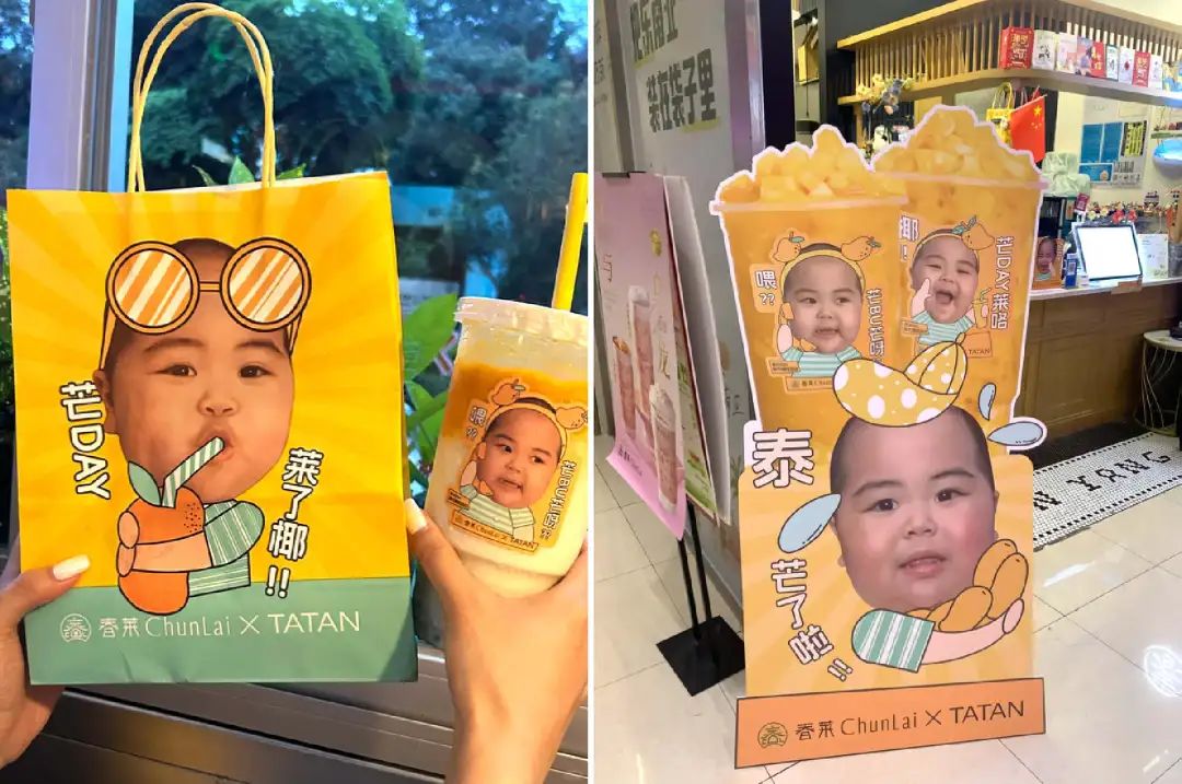 东南亚奶茶向来以新奇的包装出圈。除了这次的大胡子冰可可,最近春莱和印尼表情包男孩TATAN合作,“表情包小胖”遍布整个门店、包装,非常有趣。