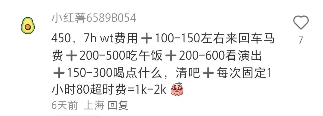 小青告诉卡思,她每次出行的平均花费在1-1.5K左右,这是单纯吃喝玩乐的价钱,尚不包含委托费在内。