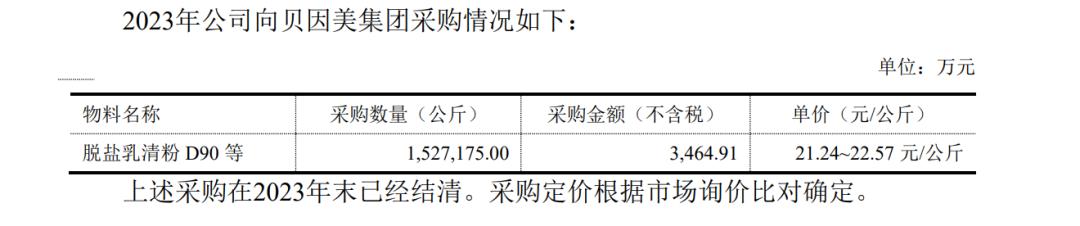 此外,2023年,贝因美集团与贝因美之间的交易收入金额还引发监管关注。在贝因美回复深交所2023年年度报告问询函公告中,2023年贝因美向贝因美集团的采购金额为3464.91万元,采购在2023年末已经结清。同时,贝因美向贝因美集团子公司比因美特的采购金额为4011.75 万元。