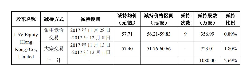 最终LAV Equity(Hong Kong)Co.,Limited以57元/股左右的价格减持了贝达药业1080万股,套现资金超6亿元,Beta Pharma In则以43.88元/股的价格套现超3亿元。