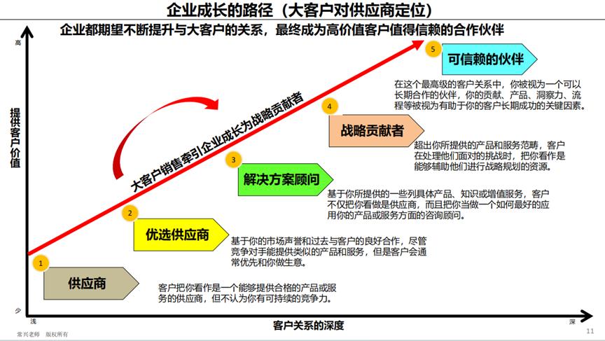 第三,“年年成功”的企业与客户关系的深度在这三者之间最深。他已经成为客户的解决方案顾问以及战略贡献者,甚至成为客户可以信赖的伙伴。