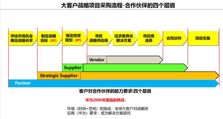 你会发现参与大客户战略采购流程不同,合作关系也不一样。只有我们提到的合作伙伴,他们全流程参与到客户战略项目中,与客户的关系最深,并为客户提供最大价值。