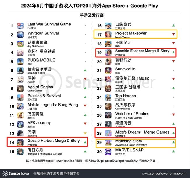 抢过三消“风头”,合成爬到出海手游Top30上半区